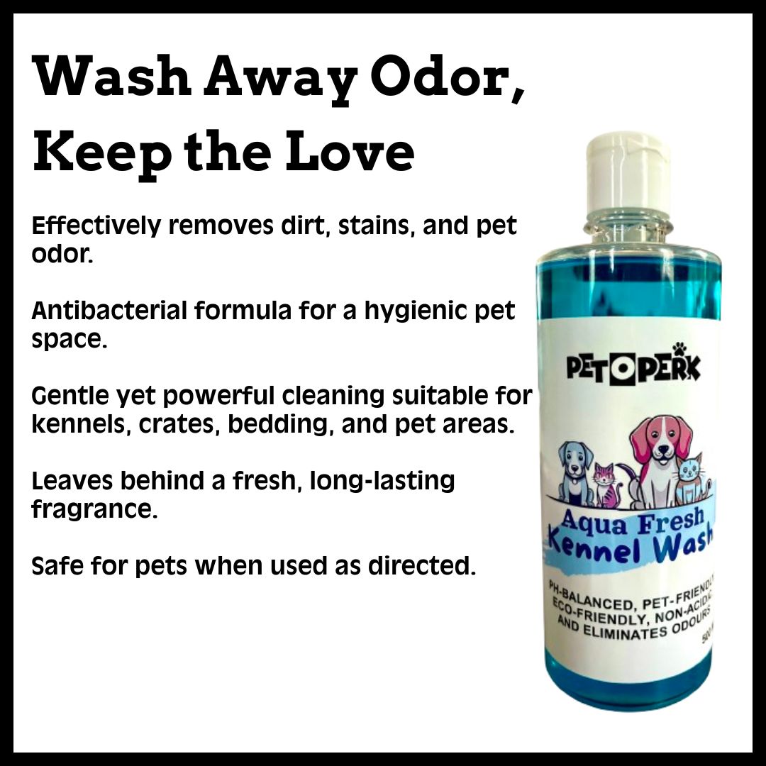 A refreshing aqua-scented wash that eliminates dirt, bacteria, and lingering odors from kennels, crates, and play areas. Safe for paws and noses, leaving your pet’s space fresh and inviting.