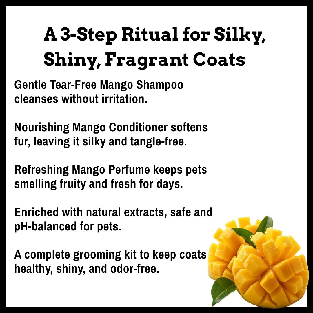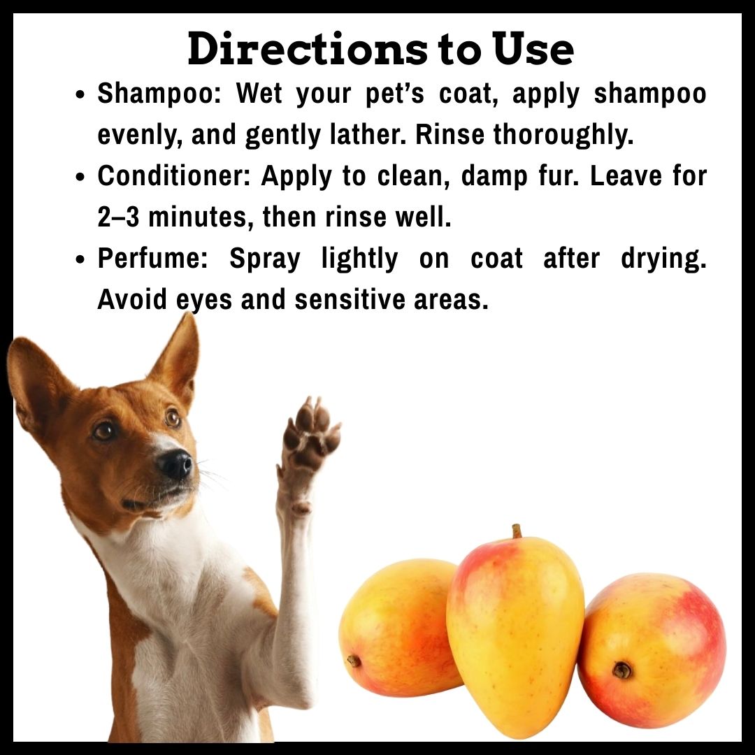 Give your furry friend the complete tropical care experience with our Tear-Free Mango Shampoo (300ml), Mango Conditioner (300ml), and Mango Breeze Perfume (200ml) – all bundled together for healthy, soft, and fresh-smelling coats. ✨ What’s Inside: - Tear-Free Shampoo – Mango (300ml) | ₹490 – Gentle, nourishing, and safe for sensitive eyes. - Conditioner – Mango (300ml) | ₹480 – Smoothens tangles, adds shine, and deeply hydrates the coat. - Perfume – Mango Breeze (200ml) | ₹375 – Keeps your pet smelling fresh and fruity for days. Bring home the Mango Care Trio – because your pet deserves head-to-tail love.
