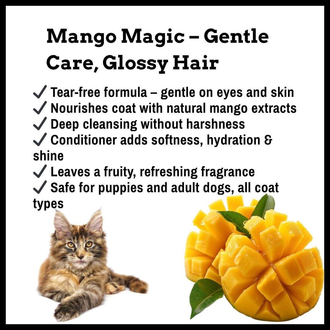 Nourish • Smooth Coat • Tropical Freshness Give your furry companion the luscious care of Mango goodness. This combo is crafted to gently cleanse, deeply condition, and leave your pet with a silky coat and a burst of tropical fragrance—all while being tear-free and safe for sensitive skin. What’s Inside: Shampoo – Tear-Free Mango (300ml) – ₹490 Conditioner – Mango (300ml) – ₹480 Total Combo Value: ₹970 Why Pet Parents Love It: ✔ Tear-free, gentle cleansing for stress-free baths ✔ Intense hydration for soft, smooth fur ✔ Adds natural shine & bounce to coat ✔ Tropical fruity fragrance that lingers ✔ Safe for sensitive skin & all coat types ✔ Perfect for regular grooming care Bring home the tropical indulgence of Mango and make your pet’s bath time a happy, fruity experience!