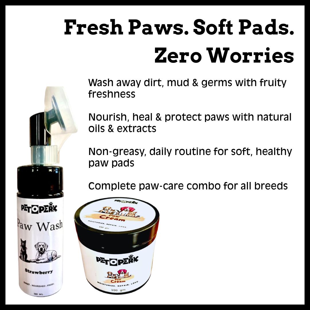 Fresh • Soft • Protected Give your pet’s paws the fruity freshness they’ll love with this gentle, nourishing combo. The sweet strawberry wash cleans and refreshes, while the creamy blend of shea butter, beeswax, and natural oils keeps paws soft and crack-free. What’s Inside: Strawberry Paw Wash (150ml) – ₹290 Nourishing Paw Cream (100g) – ₹175 Total Combo Value: ₹465 Why Pet Parents Love It: ✔ Fruity fresh paw wash that pets enjoy ✔ Gently removes dirt & odor ✔ Shea butter + oils for deep hydration ✔ Repairs cracks & restores softness ✔ Safe, natural, and pawfect for daily use Soft, fruity-fresh paws. Every single day. 🍓🐾