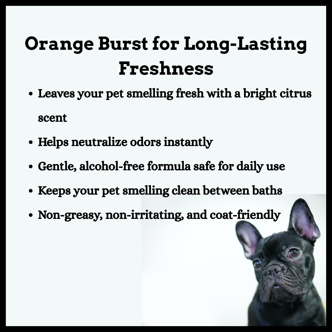 Bright, zesty, and instantly refreshing — the Orange variant is for pets who bring the energy. The citrus pop cuts through any dullness and leaves them smelling clean, lively, and ridiculously huggable.