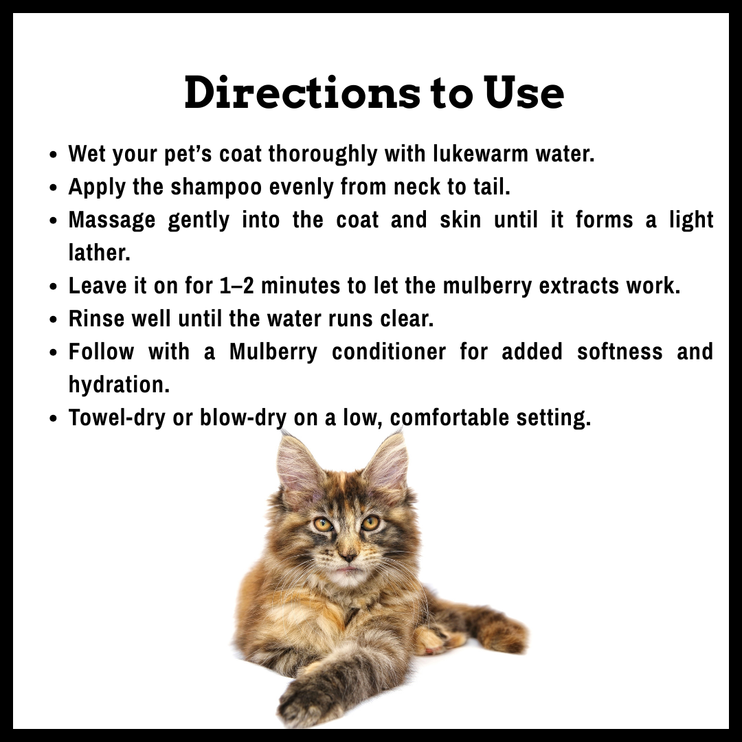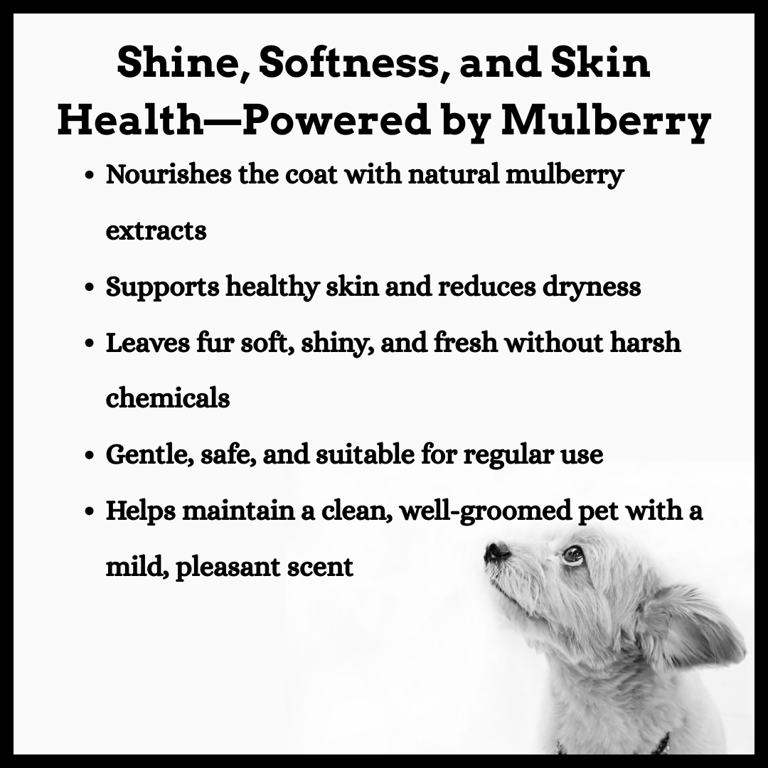 Rich, smooth, and nourishing — this Mulberry shampoo adds softness and shine without trying too hard. It lifts dirt gently and leaves the coat smelling warm and clean, like a fresh wash with a hint of sweetness.