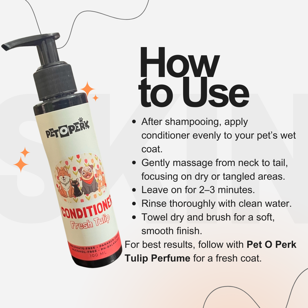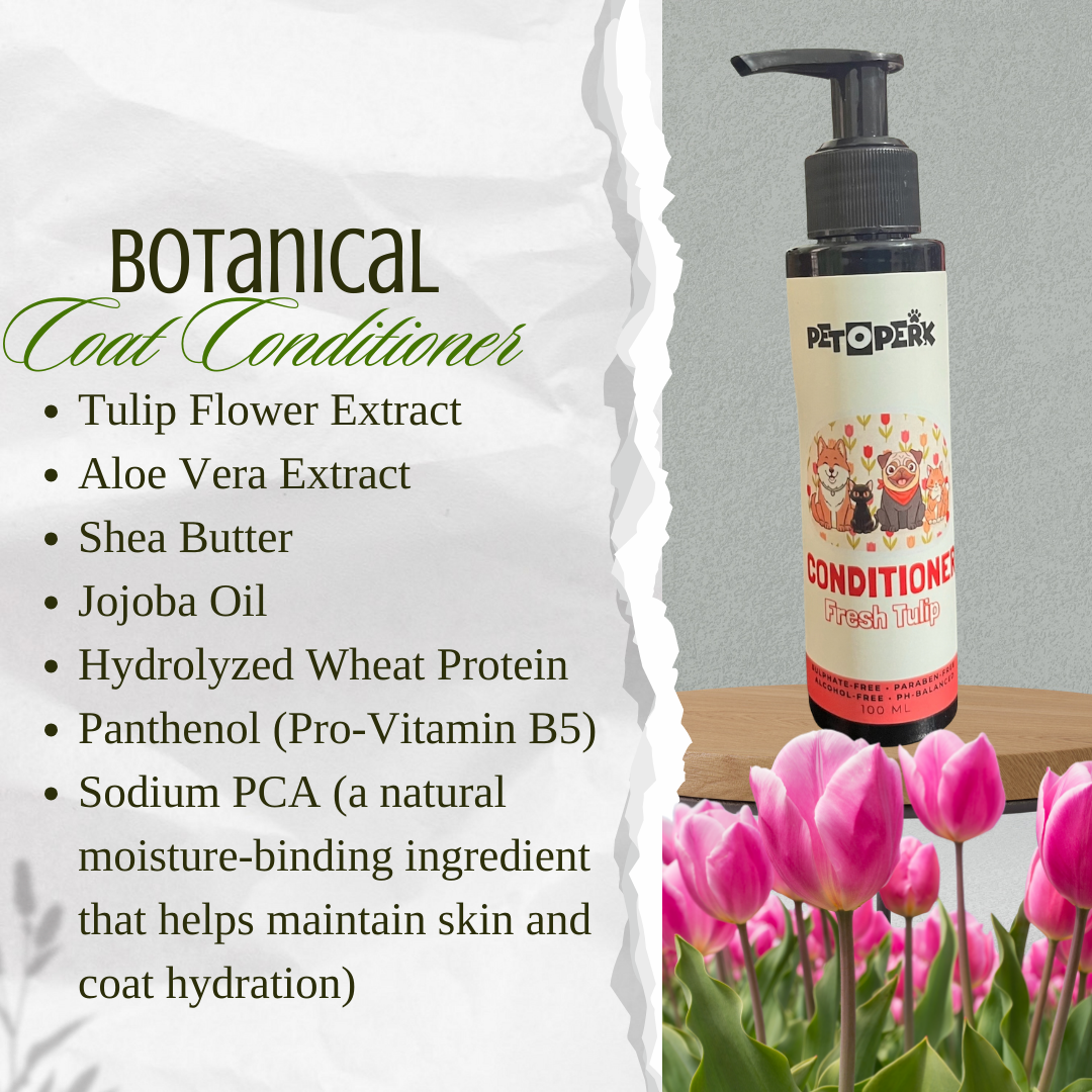 Keep your pet’s coat clean, soft, and naturally fresh with Pet O Perk Fresh Tulip Shampoo. This gentle sulphate-free cleanser removes dirt and impurities while maintaining the coat’s natural moisture balance. Enriched with tulip flower extract, aloe vera, and panthenol, the formula helps soothe the skin and support healthy coat hydration. Jojoba oil and hydrolyzed wheat protein help improve coat texture, leaving fur smoother, softer, and easier to manage after every wash. Designed for regular grooming, Fresh Tulip Shampoo cleans effectively while keeping the coat soft, shiny, and refreshed.